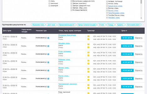 - вывод цен на услуги из Мастер-Тур 15 на страницу сайта туроператора
