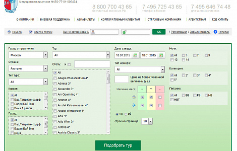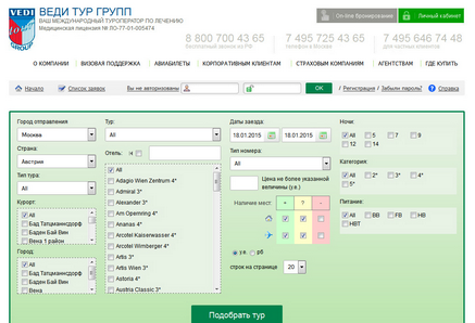 Оформление системы Мастер-Web на сайте Веди Тур Групп Лечение (группа компаний Веди Групп) с оздоровительными и лечебными турами от туроператора Веди Тур Групп.