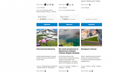 - разработаны поисковики туров, отелей, экскурсионных программ, достопримечательностей