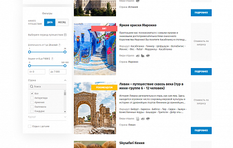 - интеграция с API Мастер-Тур 15 с возможностью поиска туров с учетом актуальных цен на стороне сайта туристического оператора
