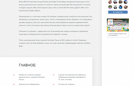 Сайт детского лагеря BoomCamp