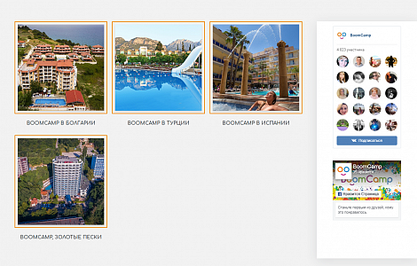 Сайт международных детских лагерей «Boom Camp». Проект туристического оператора «Ост-Вест», существующий с 2009 года. В состав «Boom Camp» входят четыре детских лагеря, расположенные в Болгарии, Турции, Италии и Испании.