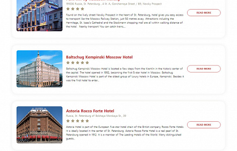 - раздел Отели с сортировкой по городам и категориям