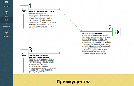 - реализован модуль Партнеры с возможностью размещения информации о компаниях-партнерах и приема заявок на подключение предоставляемых ими услуг